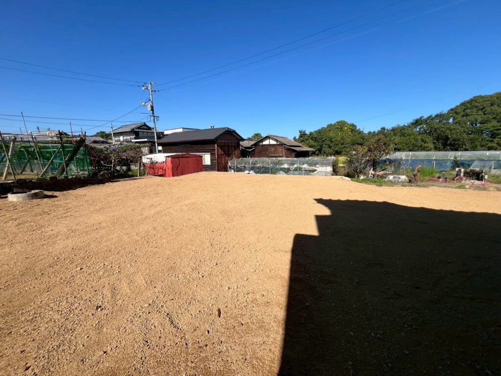 工事完了後の写真をご覧ください。建物は基礎から綺麗に撤去され、地面はキャタピラで丁寧に転圧された美しい更地へと生まれ変わりました。隣接する道路や隣家との境界部分も丁寧に掃除を行い、そのまま売却や新築工事が可能なクリーンな状態に仕上げています。