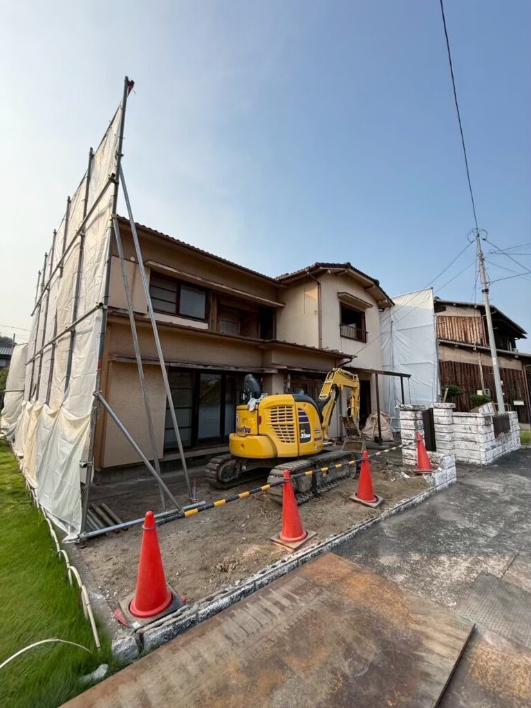 株式会社アライブが最近手掛けた、倉敷市児島上での施工事例をご紹介します。今回のご依頼は、長年空き家となっていた木造2階建て住宅の解体工事でした。施工前の状態は、立派な瓦屋根と重厚な木造構造が特徴の建物でしたが、経年劣化により一部の部材が脆くなっている箇所も見受けられました。工事にあたっては、まず近隣の方々への丁寧なご挨拶回りを行い、粉塵や騒音への理解を深めていただくことからスタートしました。